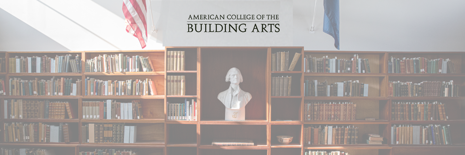 The American College of the Building Arts is quickly becoming the nation’s leading repository of literature within the building arts, the highlight of which is the Jefferson Collection of rare and historic books. Though copies of these rare books can be found in leading archival resources around the world, ACBA is seeking to bring as many of these architectural resources as possible together in one place.